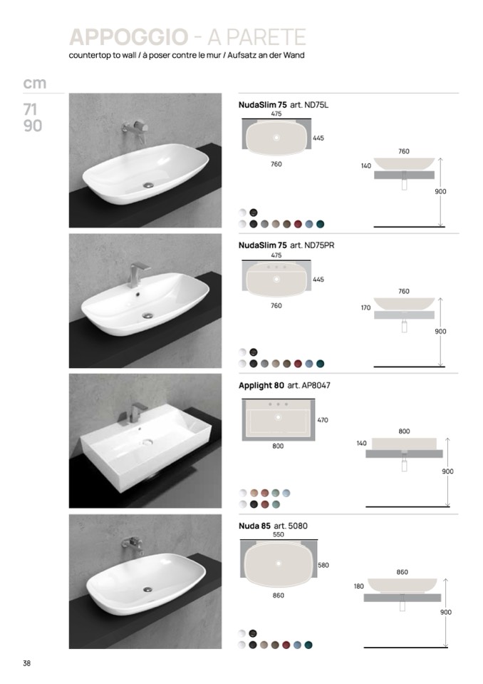 countertop to wall / à poser contre le mur / Aufsatz an der Wand