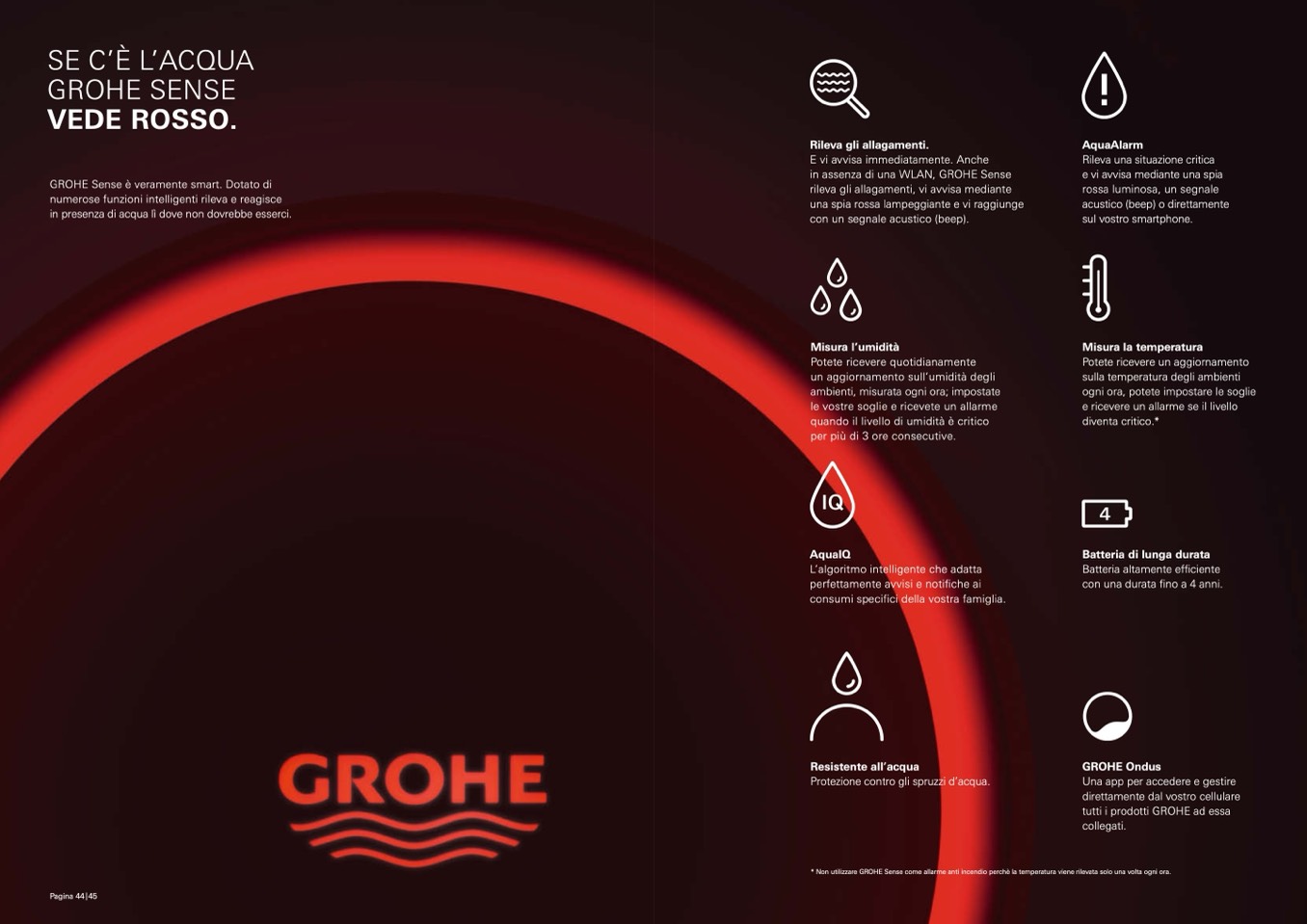 * Non utilizzare GROHE Sense come allarme anti incendio perchè la temperatura viene rilevata solo una volta ogni ora.