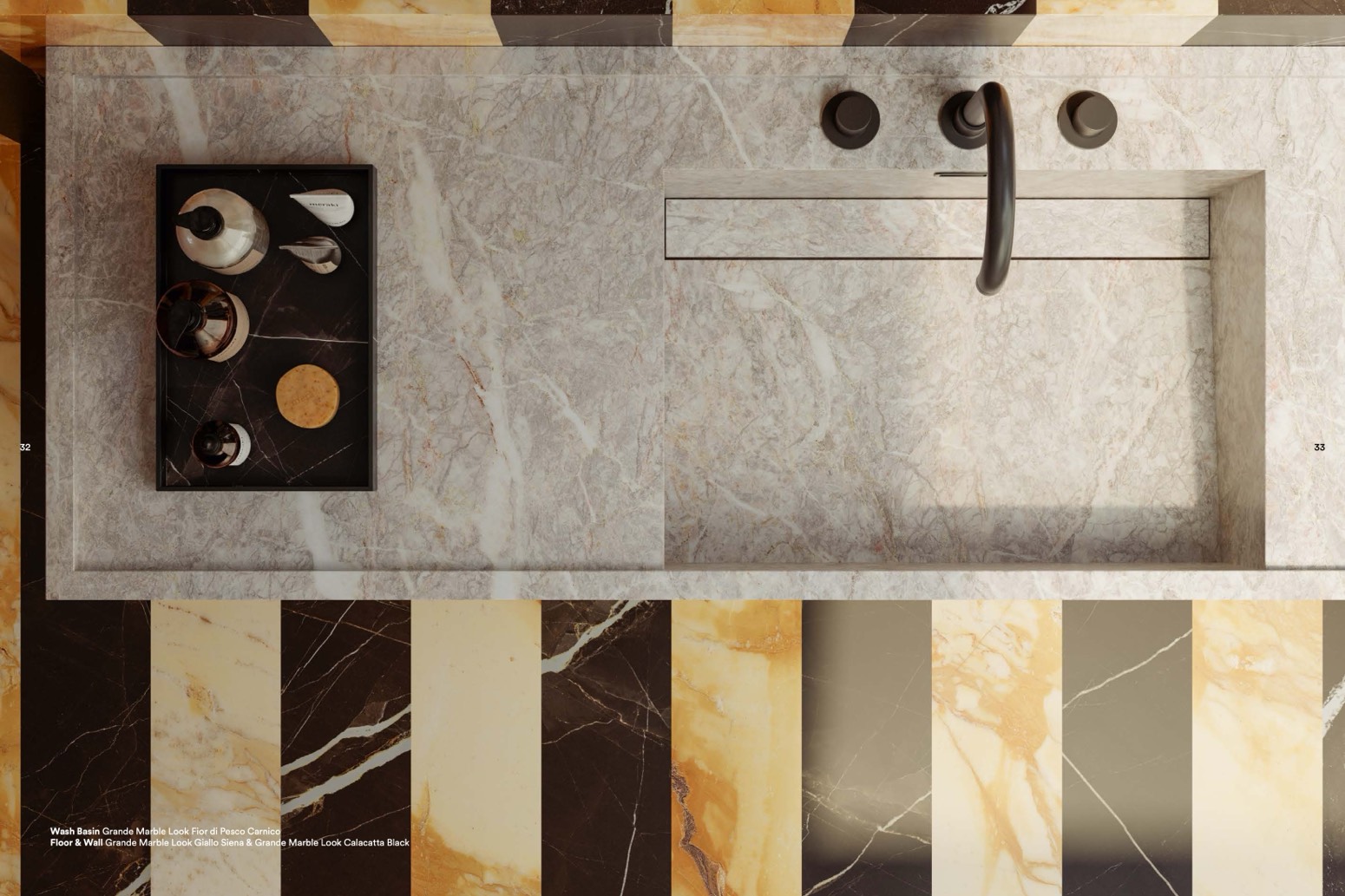 Floor & Wall Grande Marble Look Giallo Siena & Grande Marble Look Calacatta Black