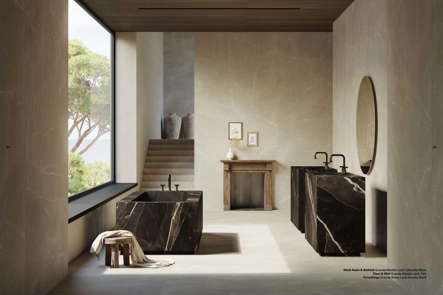 Wash Basin & Bathtub Grande Marble Look Calacatta Black