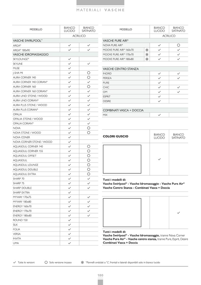- Vasche centro stanza, tranne Pure, Esprit, Desire