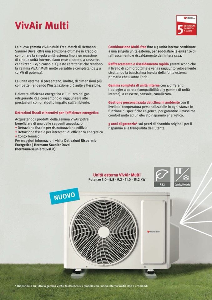 * Disponibile su tutta la gamma VivAir Multi esclusi i modelli con l'unità interna VivAir One e i comandi