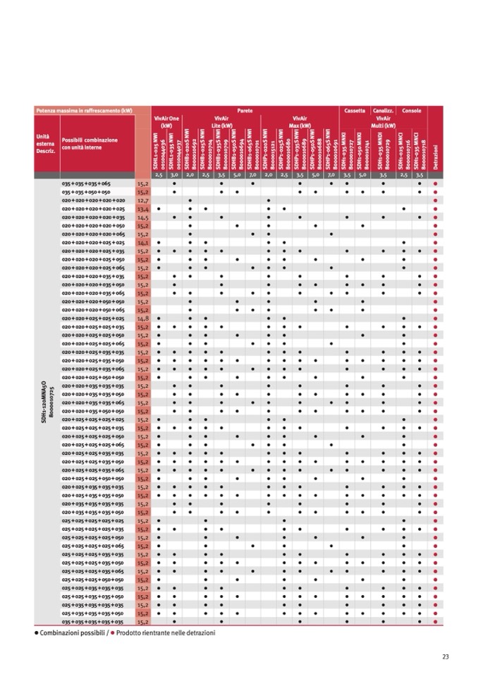 ● Combinazioni possibili / ● Prodotto rientrante nelle detrazioni