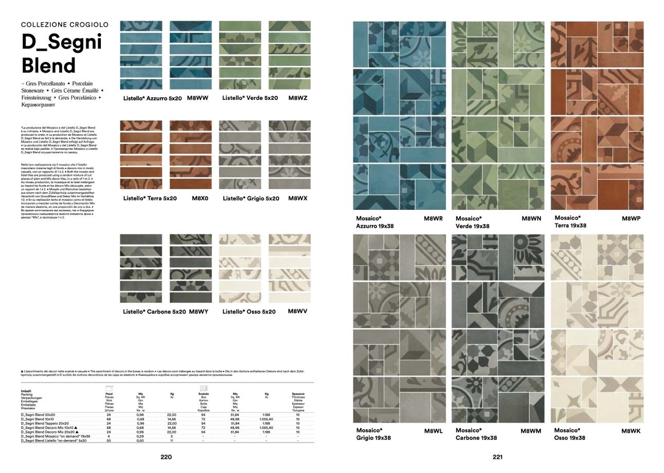 Mosaico und Listello D_Segni Blend erfolgt auf Anfrage.
