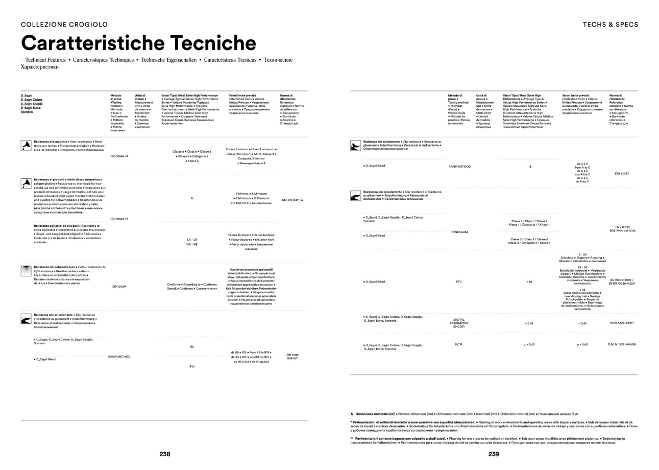 ** Pavimentazioni per zone bagnate con calpestio a piedi scalzi. • Flooring for wet areas to be walked on barefoot. • Sols pour zones mouillées avec piétinement pieds nus. • Bodenbeläge in