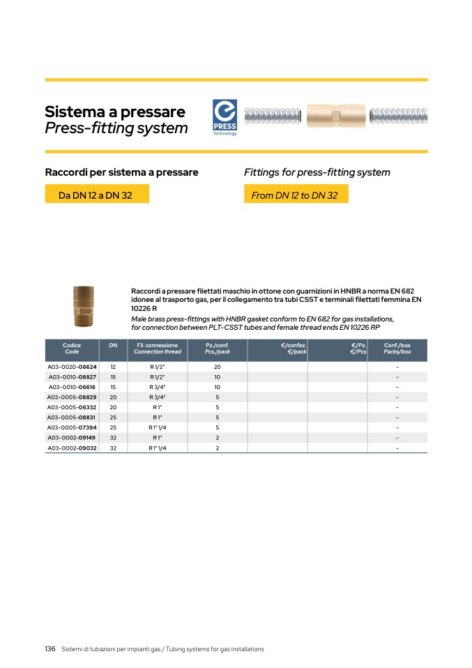 Sistemi di tubazioni per impianti gas / Tubing systems for gas installations