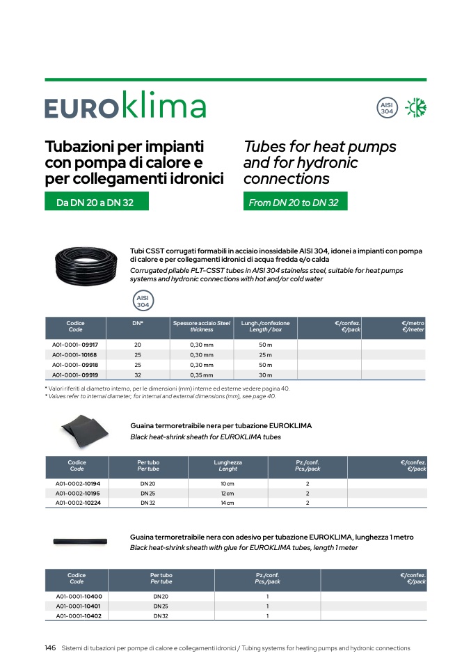 Sistemi di tubazioni per pompe di calore e collegamenti idronici / Tubing systems for heating pumps and hydronic connections