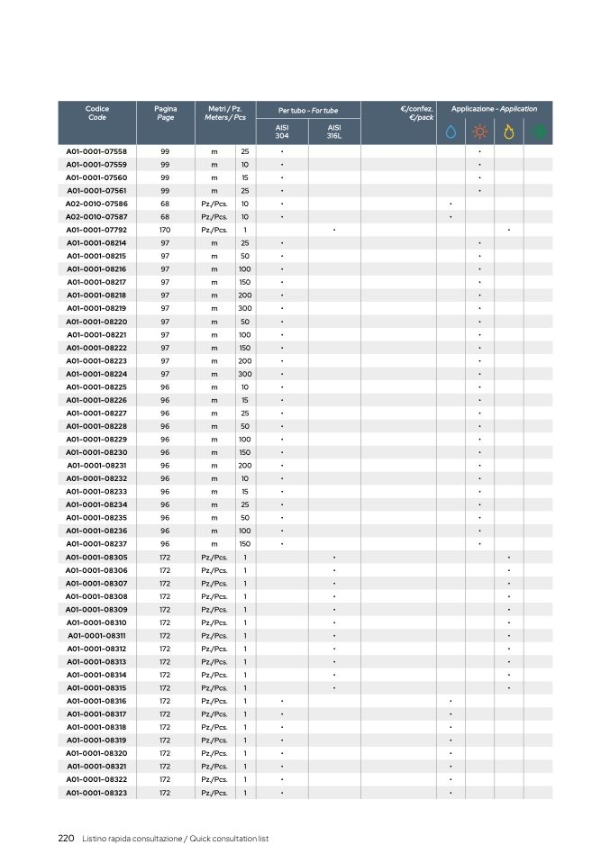 Listino rapida consultazione / Quick consultation list