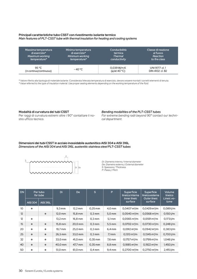 Dimensions of the AISI 304 and AISI 316L austenitic stainless steel PLT-CSST tube