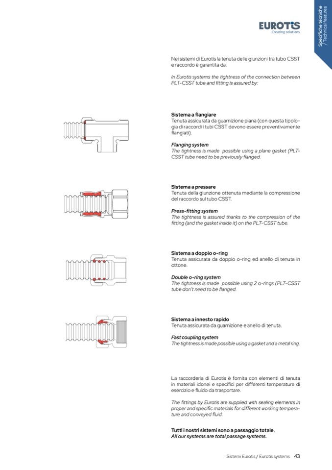 La raccorderia di Eurotis è fornita con elementi di tenut