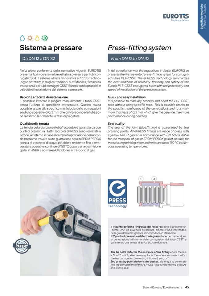 rugati CSST. II sistema utilizza l'innovativa ePRESS Techno-