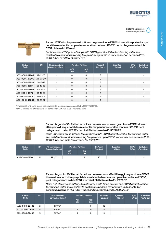 Sistemi di tubazioni per impianti idrosanitari e riscaldamento / Tubing systems for water and heating installation