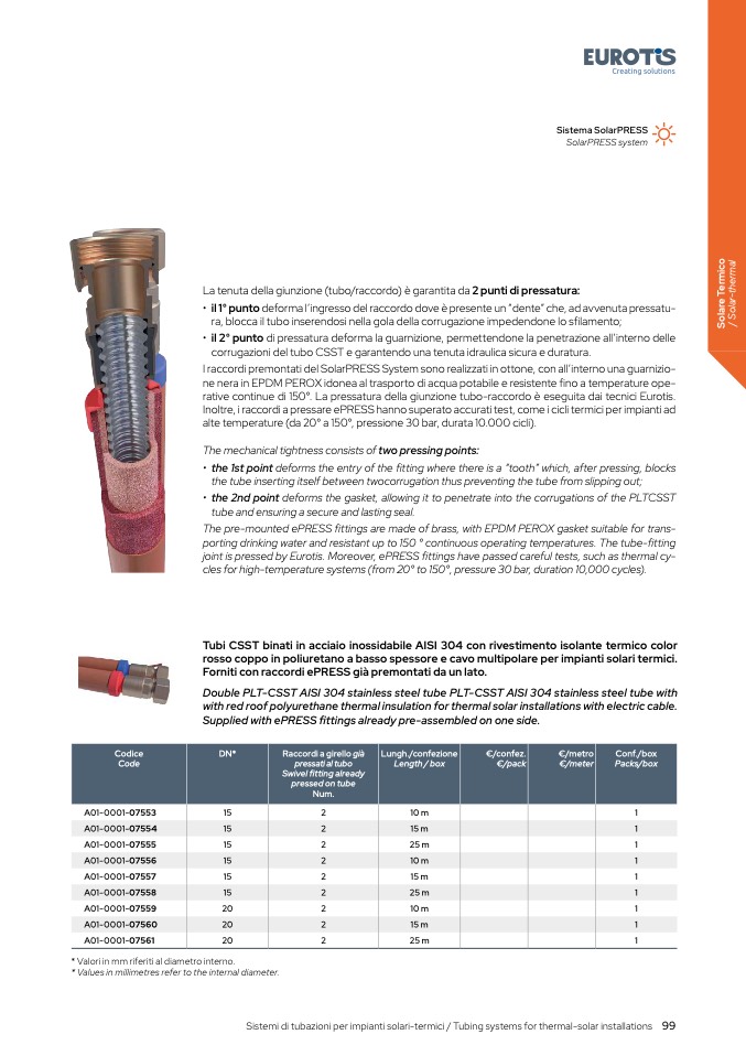 Sistemi di tubazioni per impianti solari-termici / Tubing systems for thermal-solar installations