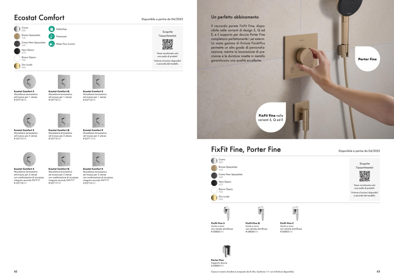 Ciascun numero d’ordine è composto da 8 cifre. Sostituire XXX con la finitura disponibile