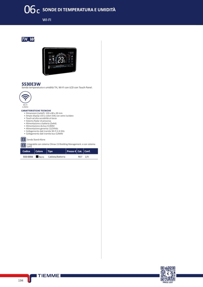 Sonda temperatura e umidità TH, Wi-Fi con LCD con Touch Panel.