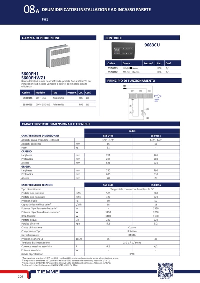 à relativa 60%, portata aria nominale; Acqua in 45/40°C;