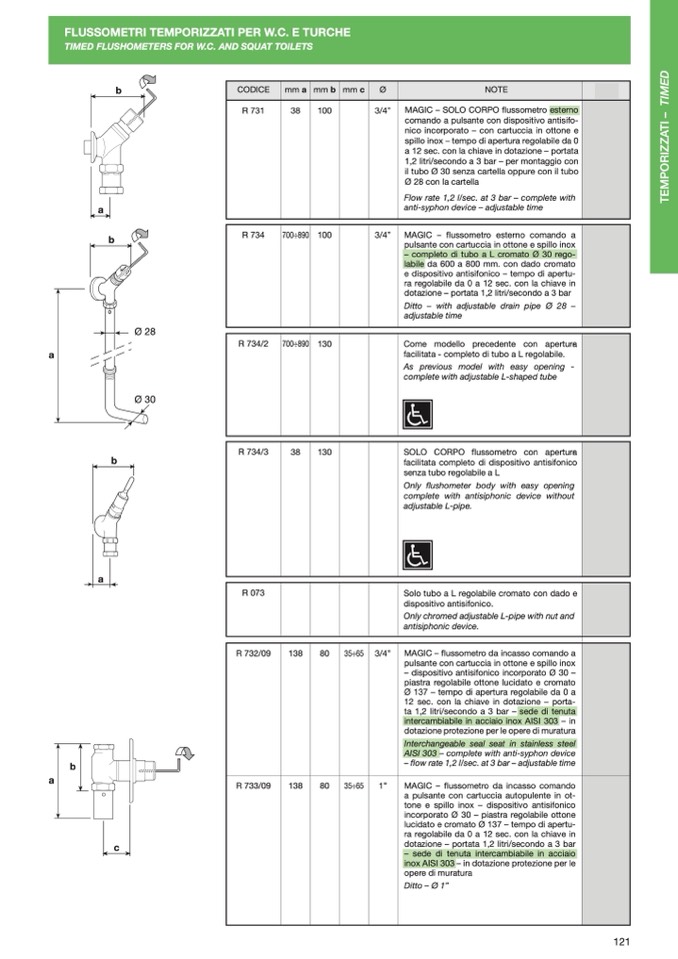 FLUSSOMETRI TEMPORIZZATI PER W.C. E TURCHE