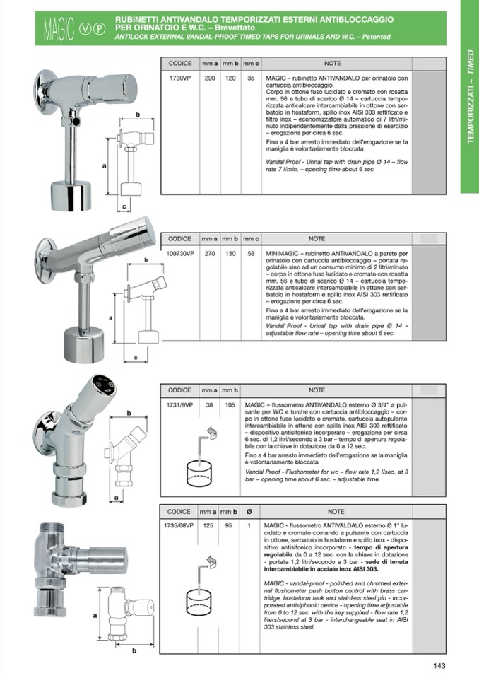 ANTILOCK EXTERNAL VANDAL-PROOF TIMED TAPS FOR URINALS AND W.C. – Patented
