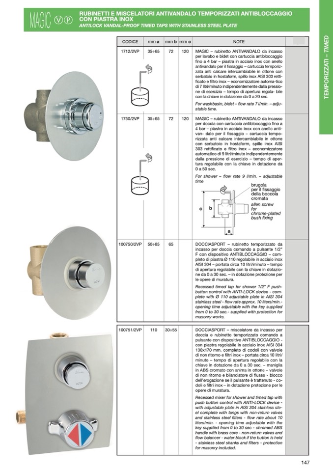 RUBINETTI E MISCELATORI ANTIVANDALO TEMPORIZZATI ANTIBLOCCAGGIO