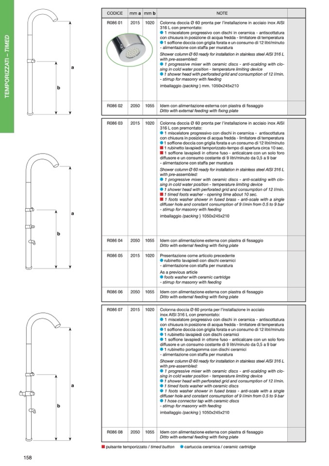 1 rubinetto lavapiedi temporizzato-tempo di apertura circa 10 sec.