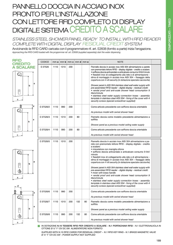 IN DOTAZIONE N.10 TESSERE RFID PER CREDITO A SCALARE - N.1 PORTACHIAVI RFID - N.1 ELETTROVALVOLA IN