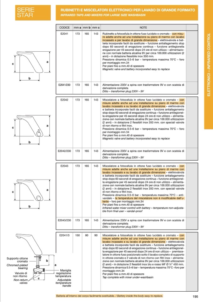 RUBINETTI E MISCELATORI ELETTRONICI PER LAVABO DI GRANDE FORMATO