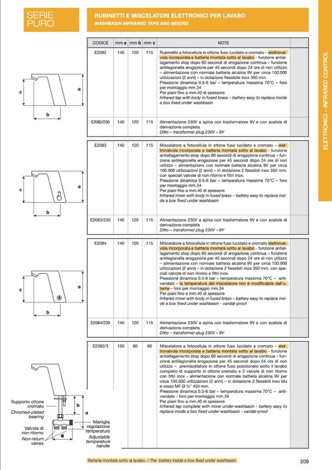 RUBINETTI E MISCELATORI ELETTRONICI PER LAVABO