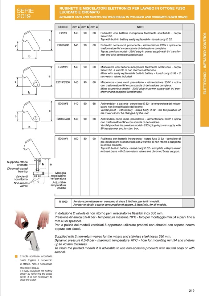 RUBINETTI E MISCELATORI ELETTRONICI PER LAVABO IN OTTONE FUSO