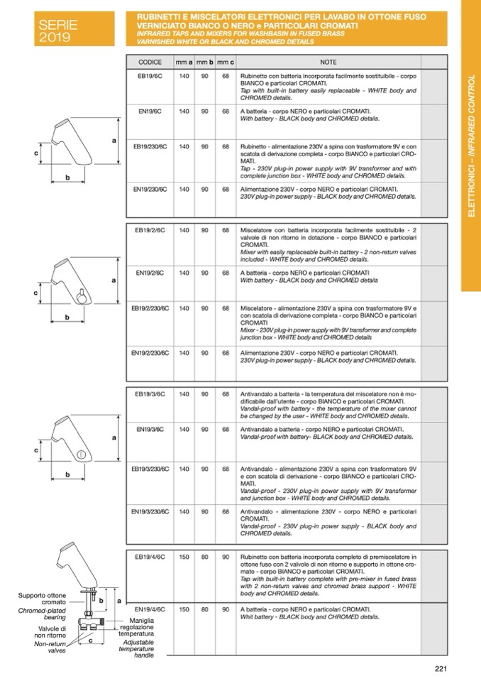 INFRARED TAPS AND MIXERS FOR WASHBASIN IN FUSED BRASS