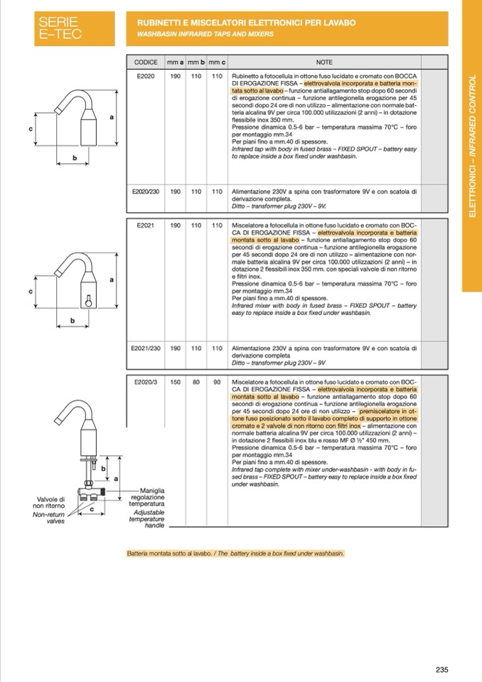 RUBINETTI E MISCELATORI ELETTRONICI PER LAVABO