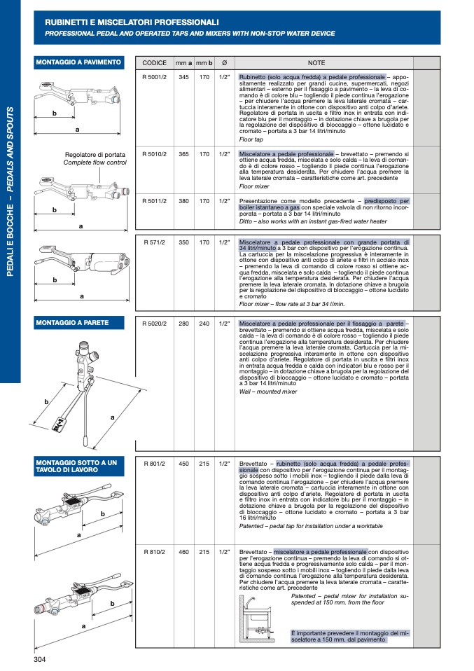 PROFESSIONAL PEDAL AND OPERATED TAPS AND MIXERS WITH NON-STOP WATER DEVICE