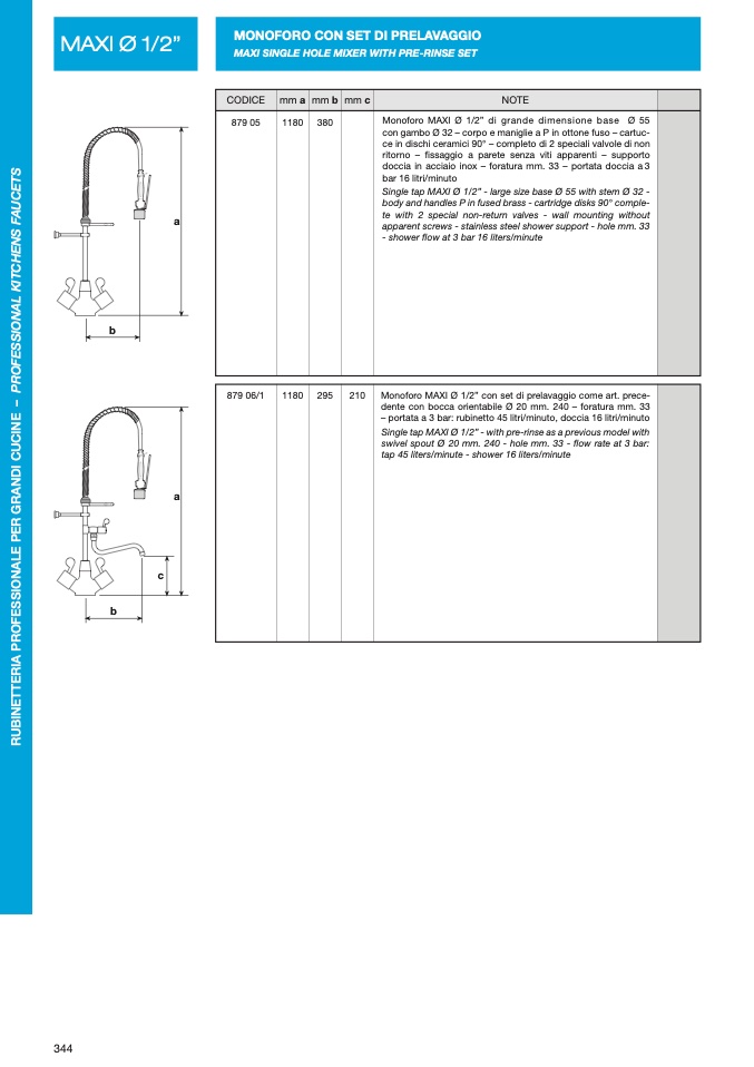 Single tap MAXI Ø 1/2” - with pre-rinse as a previous model with