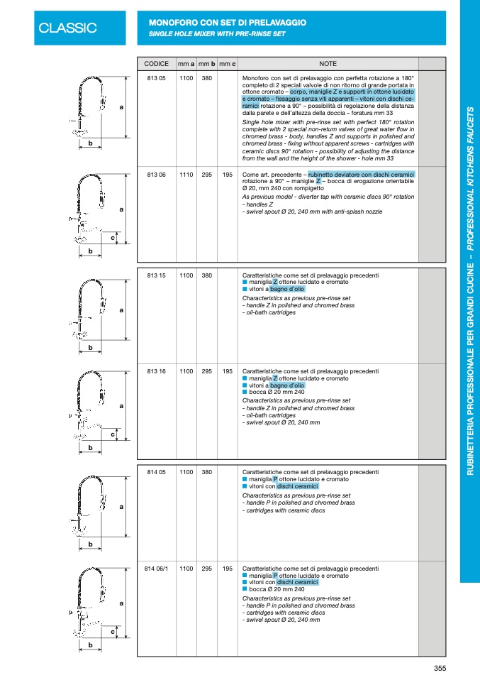 rotazione a 90° – maniglie Z – bocca di erogazione orientabile
