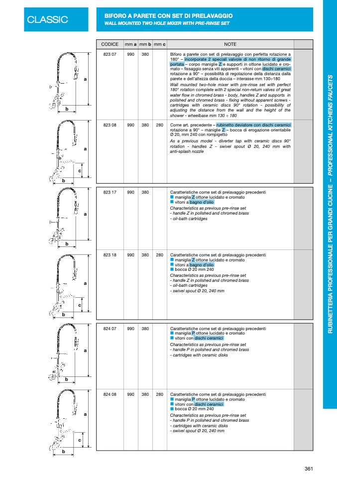rotazione a 90° – maniglie Z – bocca di erogazione orientabile