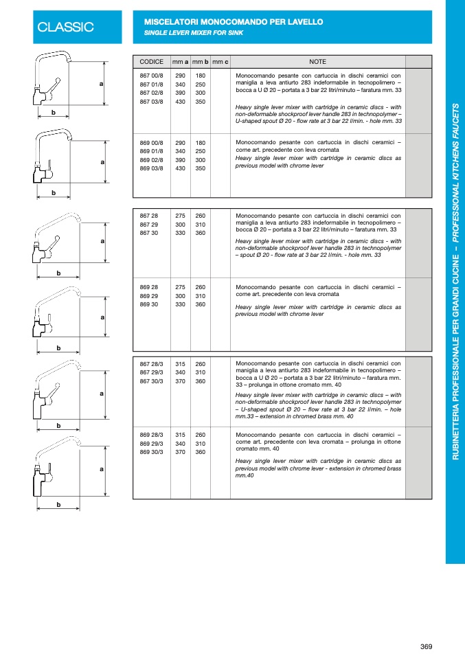 – spout Ø 20 - flow rate at 3 bar 22 l/min. - hole mm. 33