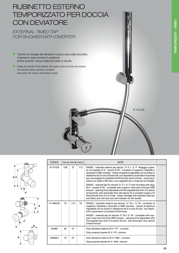supporto, flessibile e doccetta in ABS cromato - tempo di apertura