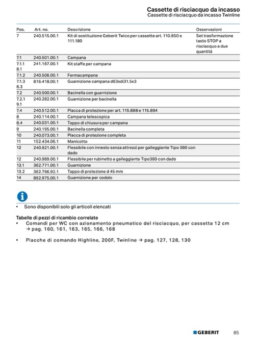 Kit di sostituzione Geberit Twico per cassette art. 110.850 e