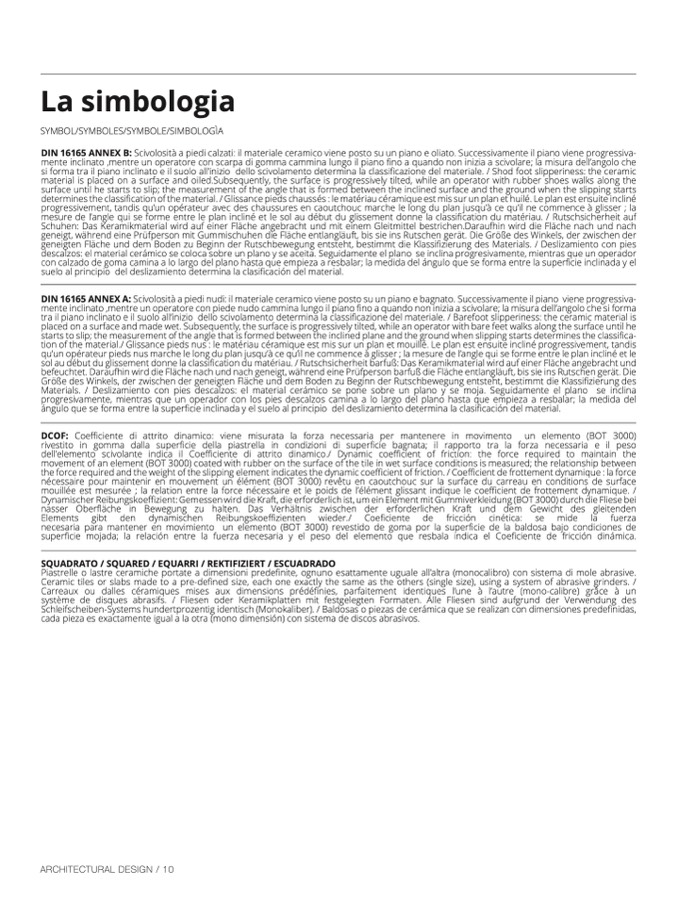 iano inclinato e il suolo all’inizio dello scivolamento determina la classificazione del materiale. / Barefoot slipperiness: the ceramic material i