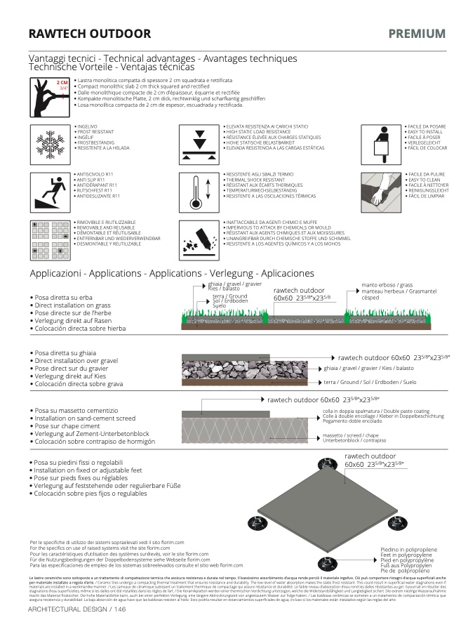 per materiale installato a regola d’arte. / Ceramic tiles undergo a compacting thermal treatment that ensures resistance and durability. The low level of water absorption makes the slabs frost resistant. This could result in superficial water stagnations even if