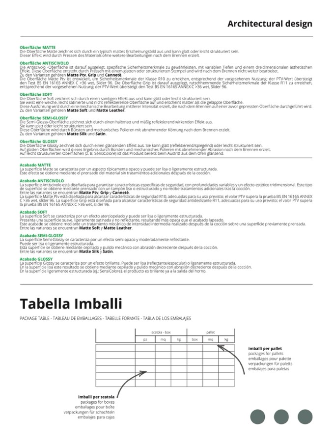 ficie se obtiene mediante prensado con un tampón liso o estructurado y no recibe tratamientos adicionales tras la cocción.