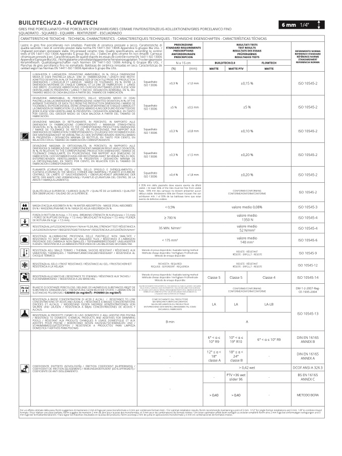 CARATTERISTICHE TECNICHE - TECHNICAL CHARACTERISTICS - CARACTERISTIQUES TECHNIQUES - TECHNISCHE EIGENSCHAFTEN - CARACTERÍSTICAS TÉCNICAS