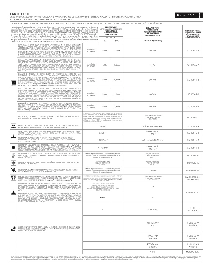 CARATTERISTICHE TECNICHE - TECHNICAL CHARACTERISTICS - CARACTERISTIQUES TECHNIQUES - TECHNISCHE EIGENSCHAFTEN - CARACTERÍSTICAS TÉCNICA