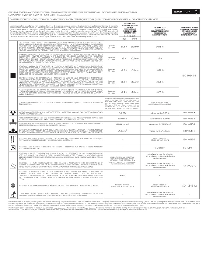 CARATTERISTICHE TECNICHE - TECHNICAL CHARACTERISTICS - CARACTERISTIQUES TECHNIQUES - TECHNISCHE EIGENSCHAFTEN - CARACTERÍSTICAS TÉCNICAS
