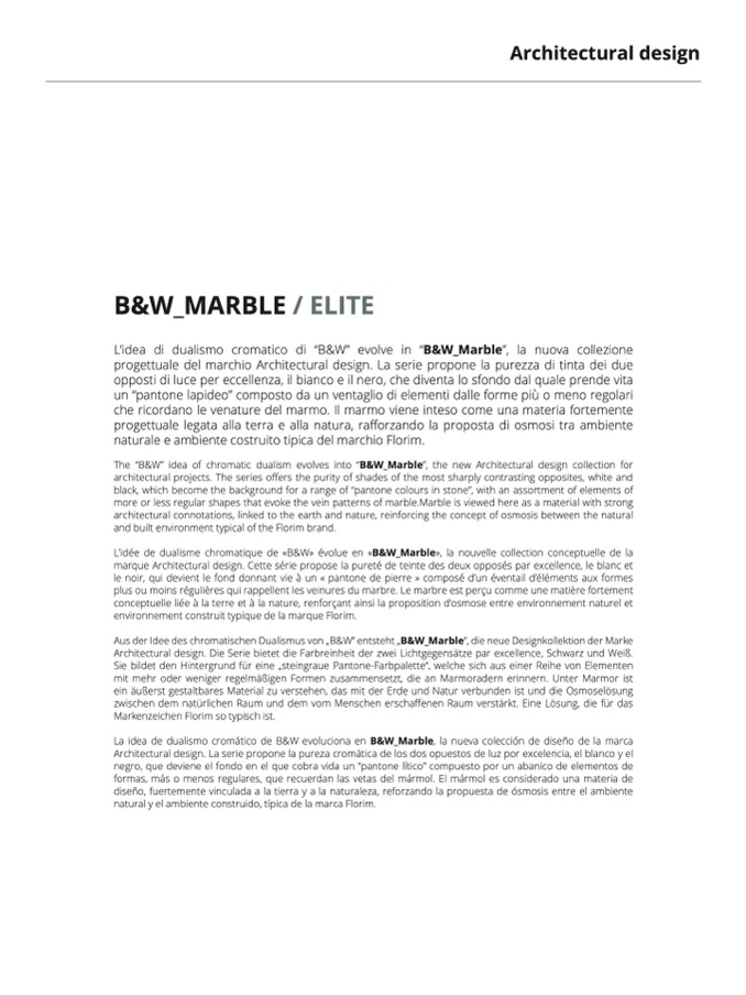 The “B&W” idea of chromatic dualism evolves into “B&W_Marble”, the new Architectural design collection fo