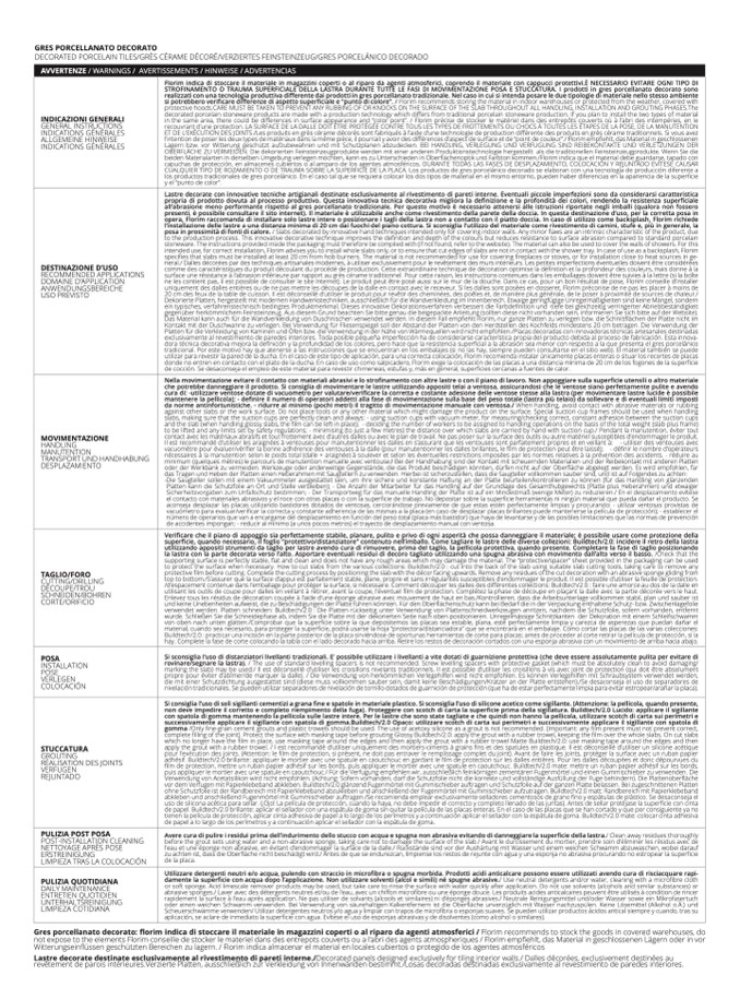 fferences in surface appearance and “color point”. / Florim précise de stocker le matériel dans des entrepôts couverts où à l’abri des intempéries, en l
