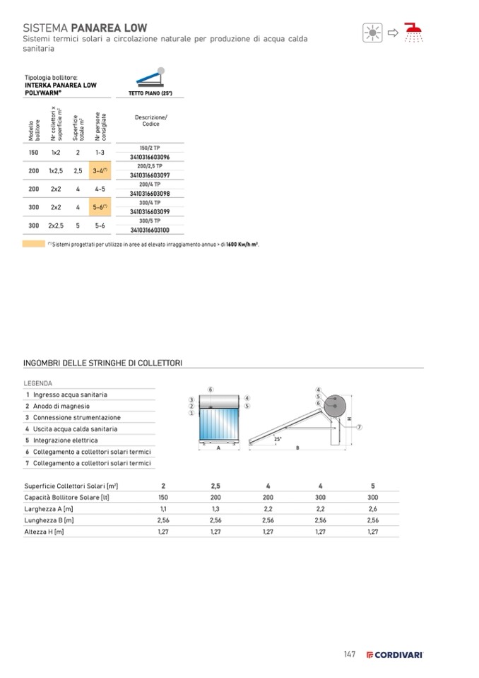 Sistemi progettati per utilizzo in aree ad elevato irraggiamento annuo > di 1600 Kw/h m