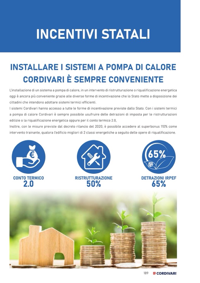 I sistemi Cordivari hanno accesso a tutte le forme di incentivazione previste dallo Stato. Con i sistemi termici