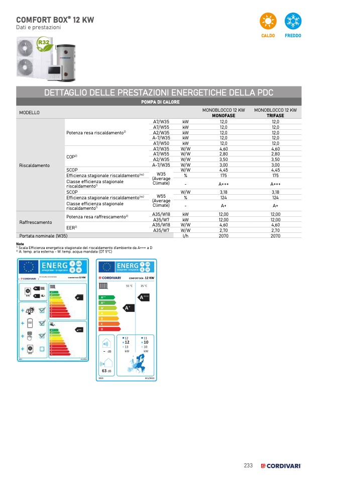 Scala Efficienza energetica stagionale del riscaldamento d’ambiente da A+++ a D