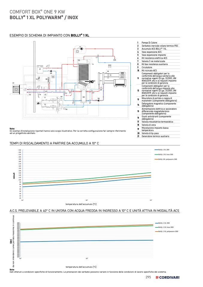 Dati ottenuti a condizioni specifiche di funzionamento. Le prestazioni dei serbatoi possono variare in funzione delle condizioni di lavoro specifiche del sistema.