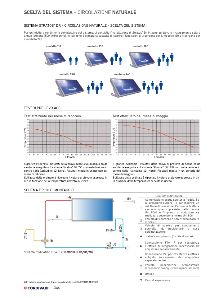 annuo (almeno 1500 W/Mq anno). In tali zone è stimata la capacità di coprire i fabbisogni di 3 persone per il modello 150 e 4 persone per
